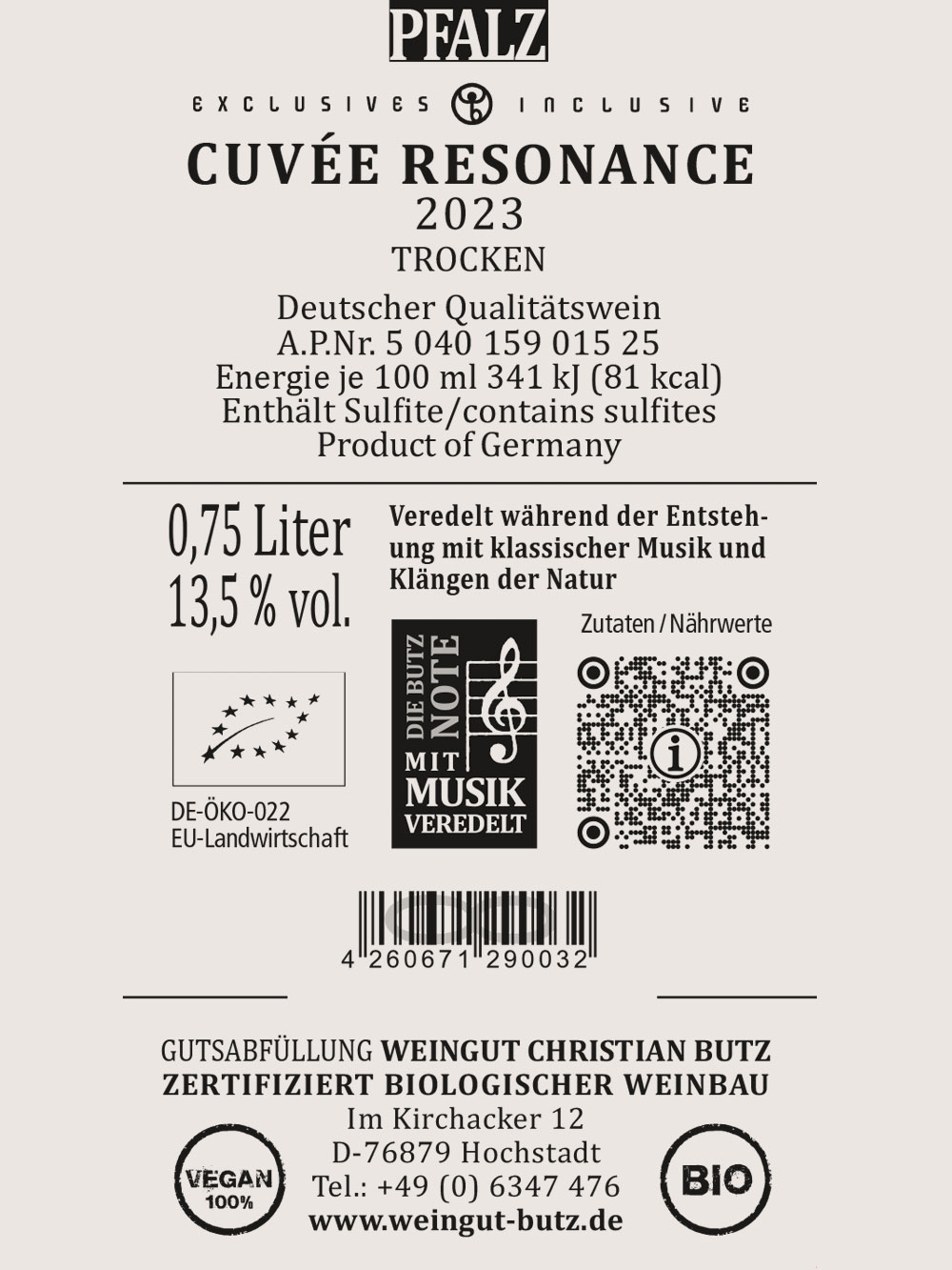 Bezaubernde Frucht und Eleganz. Nase von Zartbitter Schokolade mit leichter Vanillenote. Elegantes Rotweincuveé mit samtigem Abgang und langem Nachhall. Leichte strukturierte Holznote erkennbar. Ein Wein – nicht nur – für besondere Tage.